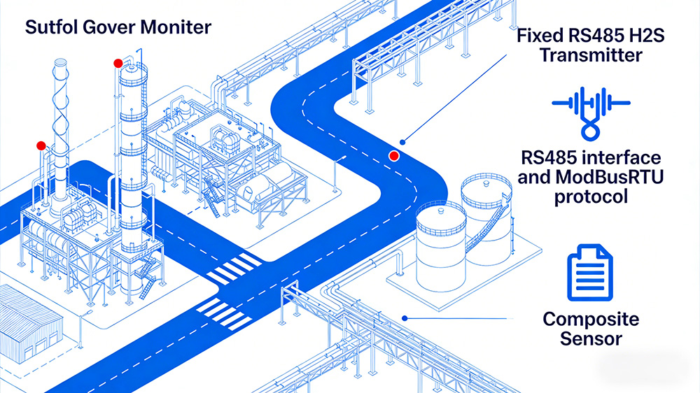 Para plantas petroquímicas com gases tóxicos e inflamáveis coexistentes, recomenda-se uma estratégia de "combinação ponto-superfície": instalar transmissores fixos de sulfeto de hidrogênio RS485 próximos a potenciais pontos de vazamento de H₂S (equipados com interface RS485 e protocolo ModBus RTU, eles suportam gerenciamento centralizado de dados e permitem monitoramento remoto conveniente) e implantar sensores compostos em áreas de canalização.