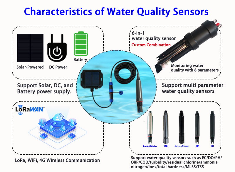 Este sensor solar de íons de magnésio LoRaWAN para qualidade da água é um dispositivo de monitoramento inteligente que integra tecnologia avançada de detecção, comunicação IoT e energia verde. Ele foi projetado especificamente para monitoramento remoto, externo e de longo prazo, de íons de magnésio (Mg²) na concentração da qualidade da água.