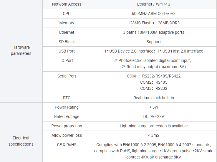 Cobertura completa de interfaces: Equipado com interfaces industriais padrão, incluindo RS485 / RS232 / Ethernet, garantindo conectividade flexível à rede cabeada.